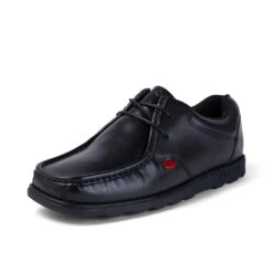 When you picture a go-to school shoe icon, images of the Fragma Lace probably spring to mind – and it’s really no coincidence. We took the silhouette of classic styles and reimagined them with sporty inspo, creating this must-have pair. Modelled in matte black leather for a fresh contemporary vibe, we updated our heritage moccasin style with a squarer profile. The textured outsole, low sole and padded collar promise to keep you comfy all day long, while all the little signature details make them undeniably Kickers.