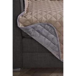 With a luxurious faux velvet pile in grey on one side and a microfibre natural fabric on the other.